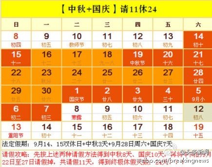 中秋國(guó)慶連休24天請(qǐng)假攻略走紅